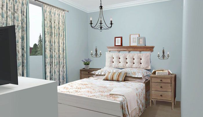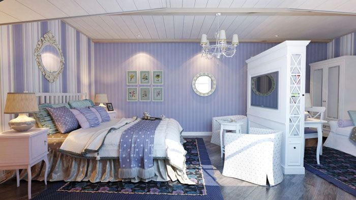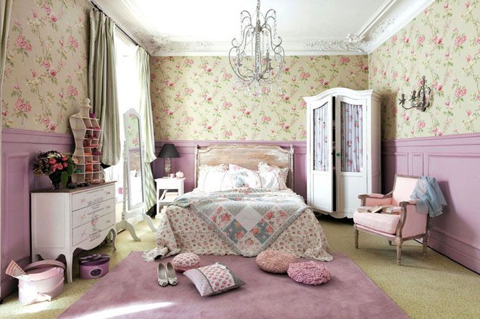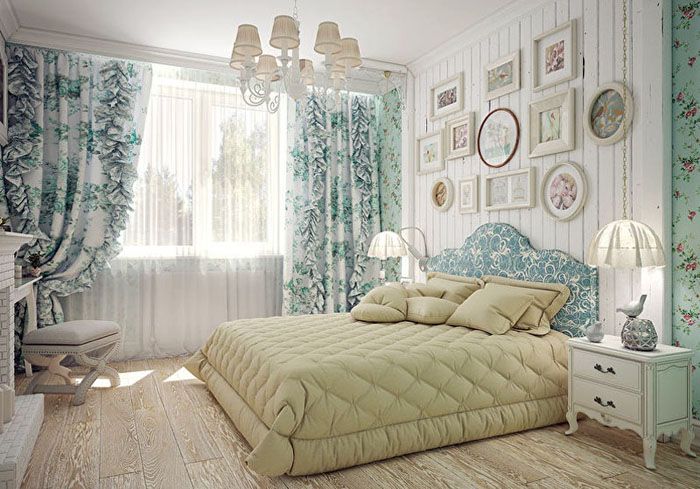 טיח, ציור וטפט לקירות חדר שינה בסגנון פרובנס עם דוגמאות צילום