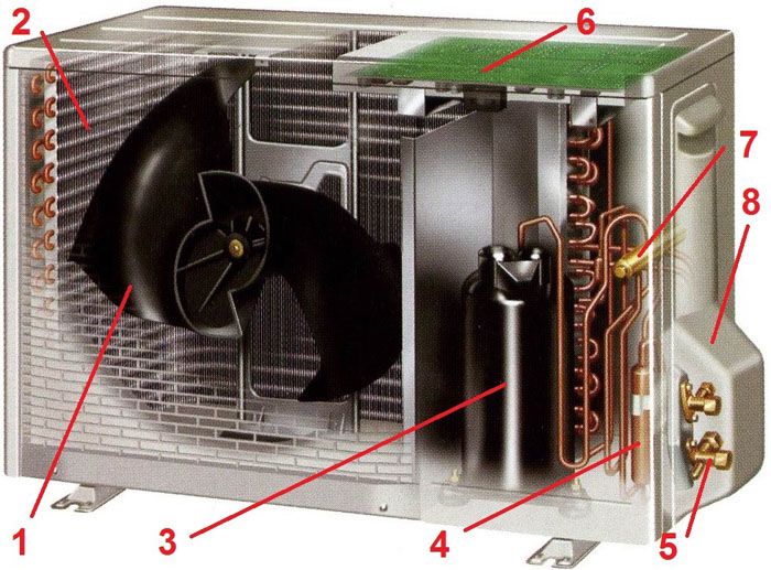 מערכת הפיצול מחולקת לשני חלקים פונקציונליים. המדחס מותקן בחוץ. בלוק עם מחליף חום מותקן בתוך החדר ו אוהד... דגמים מודרניים רבים מצוידים בתנורי חימום, פילטרים. ציוד זה מרחיב משמעותית את הפונקציונליות הבסיסית.