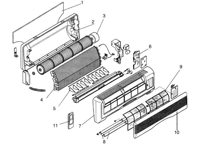 - בחלק זה (7) מותקן מסנן רשת (9) שמכוסה בגריל דקורטיבי (10).