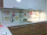 - בעת ביצוע הזמנה של סינר מטבח מזכוכית אצל היצרן, עליך להקפיד מאוד על המידות. עדיף שהם יוסרו על ידי נציג החברה. ככלל, אי אפשר לשנות את המידות המקוריות של הסינר, אפילו בחצי ס"מ;
