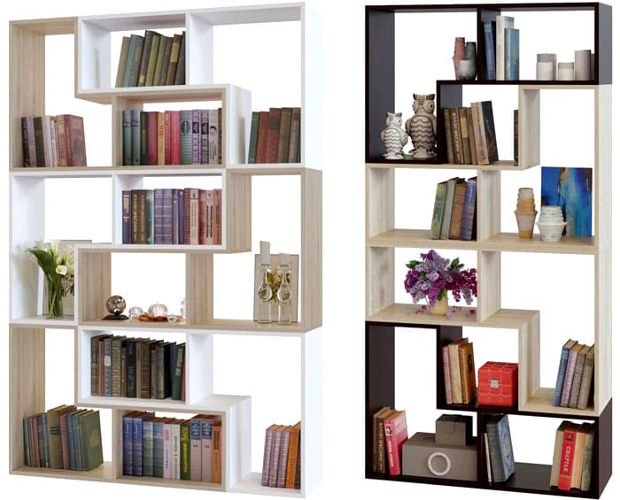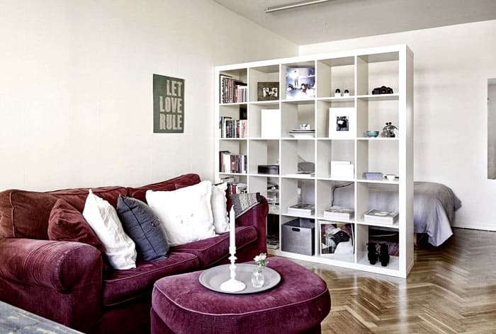 כאשר אתה צריך לחלק את החדר ויזואלית לאזורים, אין דבר טוב יותר ממחיצה עם מדפים. לפני שקונים מתלים לחלל ייעוד בחדר, הם מבינים את הפונקציונליות שלהם ואת האפשרויות הדקורטיביות.