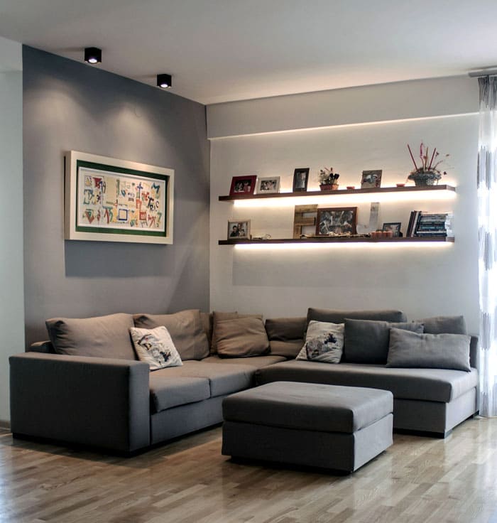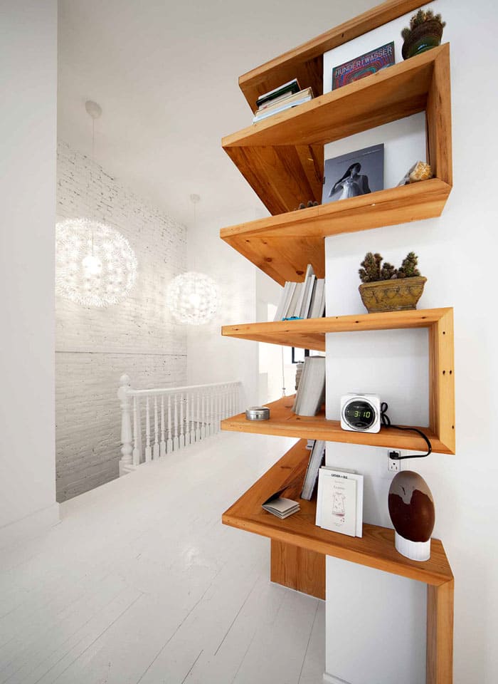 מדפי הרצפה נשארים קלאסיים. המדפים ממוקמים על פי כללי הסימטריה, או פשוט באופן אסימטרי ביחס זה לזה. זה אידיאלי לכל חדר.