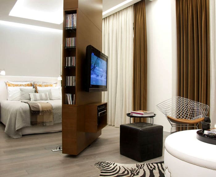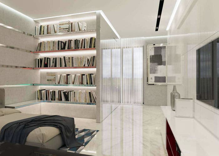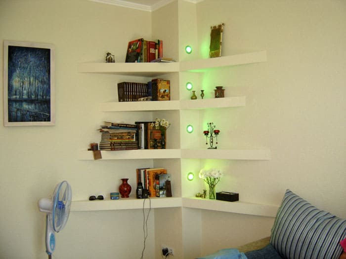 דירות עם נישות מבקשות להתקין מתלה מובנה. הם משתמשים בו כספרייה או כמוזיאון לערכים דקורטיביים היקרים לבעל החדר.
