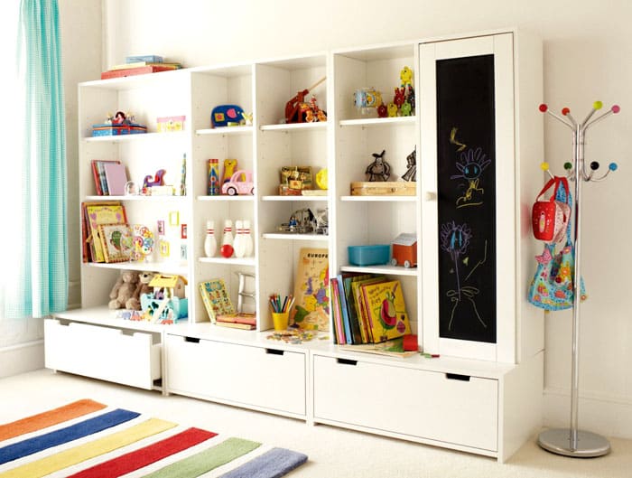 מדפי אחסון צעצועים: פתרון בעיית הסדר בחדר הילדים