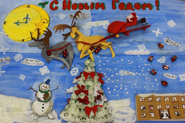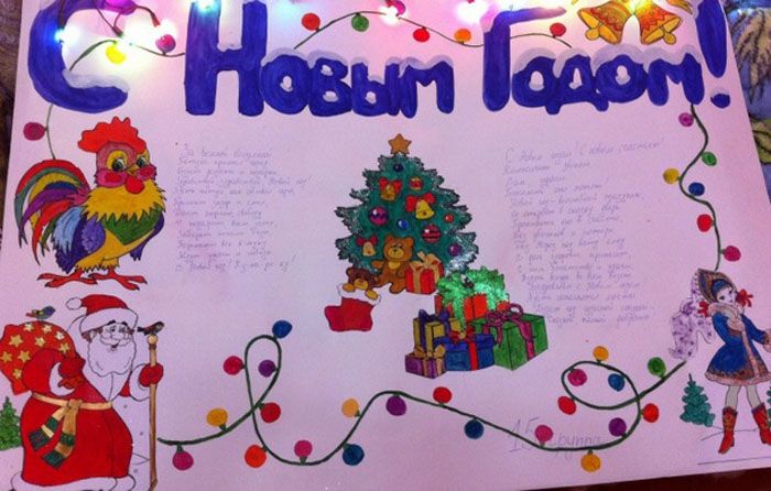 מגוון רחב של תמונות מתאים לילדים בגילאים שונים. אם בני נוער בגילאי 13-14 מעמידים פנים שסנטה קלאוס הוא משהו ילדותי לחלוטין, והם כבר מבוגרים, אז התלמידים מציירים בשמחה לא רק את עלמת השלג, אלא גם נותנים שמות לכל הצבאים שעל הכרזה.