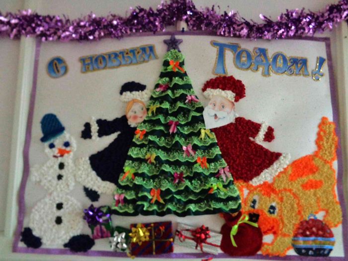 בגן ילדים תמיד מסתכלים בעניין בעיתון הקיר "שנה טובה!" מחנכים, הורים וילדים יכולים לקחת חלק ביצירתו. ילדים מופקדים על הגדרת טביעות ידיים ואצבעות מרוחות בגואש, ילדים גדולים מקבלים מספריים בידיהם ועוזרים להכין אלמנטים דקורטיביים. הורים מדריכים ילדים, מציירים, מציירים. עבודה קולקטיבית כזו מפגישה ועוזרת להתאים לחיובי החגיגי.