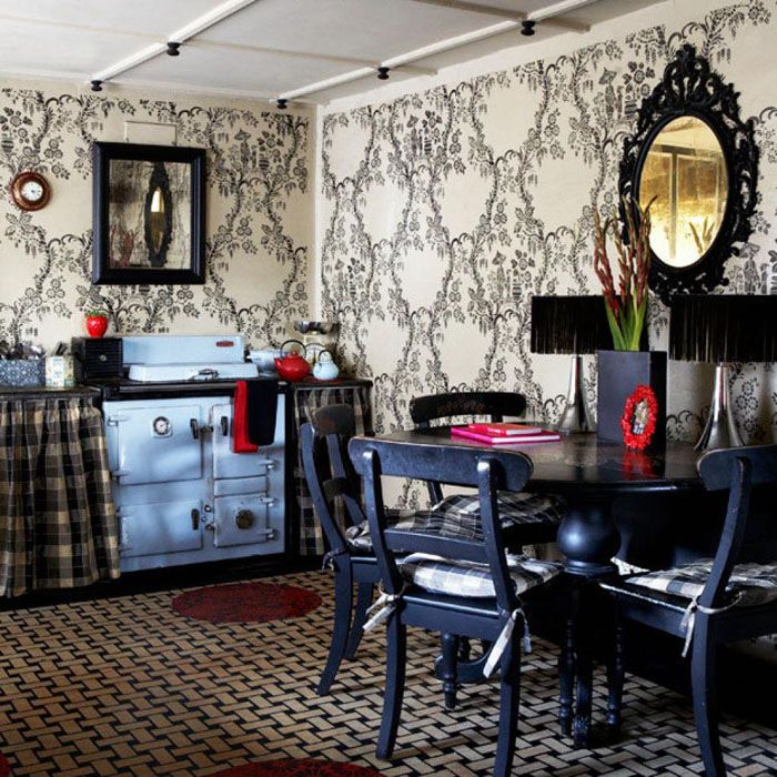 לא מומלץ להשתמש בטפטים לא מעשיים לקירות המטבח; קירות צבועים בגוונים טבעיים חמים, שעליהם ניתן להחיל שרטוט סטנסיל, תהיה האפשרות הטובה ביותר. ניתן לסיים את הקיר מעל משטח העבודה באריחי פרחים או בפסיפסים.