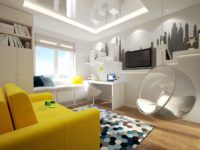 הייטק משמש לעתים רחוקות לחדר של ילד קטן. ישנן סיבות רבות לכך. חדר הילדים צריך להיות מלא בצבעים וחמימות, להכיל חפצים צבעוניים שיעזרו לתינוק ללמוד על העולם. פנים ההייטק לא יכול להתפאר בצבע ולא בעיצוב. אך בני נוער נמרצים אשר מעריצים את כל מה שחדש ומתקדם יעריכו את היי-טק.