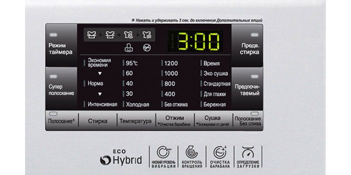 חָשׁוּב! דגמים משולבים של ציוד מציעים שתי אפשרויות ייבוש: לפי זמן ומצב הלחות של הכביסה.