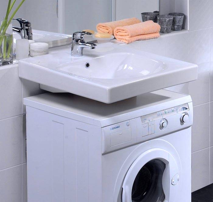 מכונות כביסה, המונחות מתחת לכלי סניטרי - כיור, נבדלות בגובהן הקטן (50–65 ס"מ) ובעומק הקטן. ואתה לא יכול לשים אותם מתחת לכל מתקן אינסטלציה.... אחרי הכל, גובה ההתקנה של הכיור הוא 90 ס"מ, מתוכם 10-20 ס"מ נופל על הכיור עצמו ועוד 10 על הסיפון. מכונות נמוכות כאלה הן מאוד לא נוחות, כי אתה צריך להתכופף יותר מדי, ולכן הן מותקנות מתחת לגופי אינסטלציה מיוחדים, שבהם סִיפוֹן ממוקם מתחת לקיר, או מתחת למשטח שאליו מוטבע הכיור. במקרה זה, גובה המכונה יכול להגיע ל70-80 ס"מ וזה הרבה יותר נוח להשתמש בה. עם זאת, לא תמיד ניתן להשתמש במשטח כה כה רחב, ולכן יש ביקוש רב למכונת כביסה עם כיור מובנה. בתוכו, הסיפון והכיור מותקנים בגוף המשותף של היחידה, ולכן התוף ממוקם באותו גובה כמו ביחידה קונבנציונאלית, ולכן הוא נוח לשימוש. יתרון נוסף של מכשירים מסוג זה הוא כי מים קרים / חמים וזרמים לביוב עוברים דרך חיבורים נפוצים.