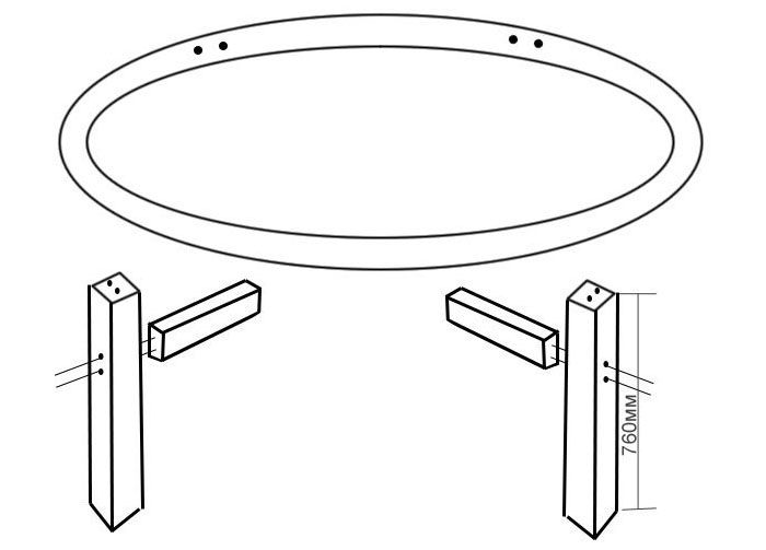 דרך נוספת להרכיב את המסגרת ולצרף את הרגליים. המסגרת אינה מכסה את כל החלל, אלא רק מחברת את הרגליים יחד. שניהם עמידים ונוחים