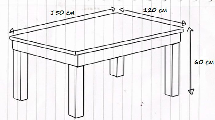 בלב הדגמים המרובעים עומדת מסגרת החוטים. זה משמש לקיבוע הרגליים בצורה מאובטחת, מה שמבטיח את יציבות המבנה כולו. הופכים את השולחן, מודדים 3-4 ס"מ עמוק מכל צד ומעבירים את המידות לקרשים. כתוצאה מכך תזדקק לשני לוחות באורך קצר יותר ושניים נוספים.