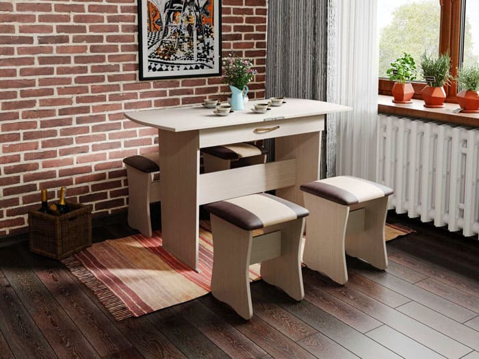 - ממדים. חשוב לקחת בחשבון את גודל המטבח. לא כל חדר ייראה נהדר על שרפרפים. כנראה שתצטרך לרכוש אפשרויות קיפול.