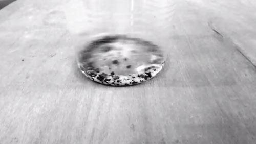לאחר סיום הטיפול והתמצקות התמיסה, נותרו שקעים הממוקמים באופן כאוטי על פני השטח ויוצרים דפוס מורכב.