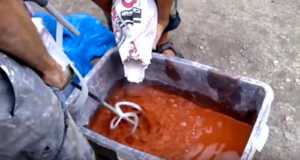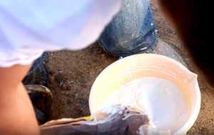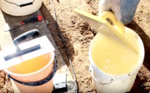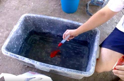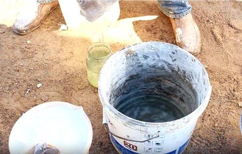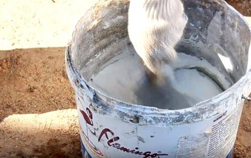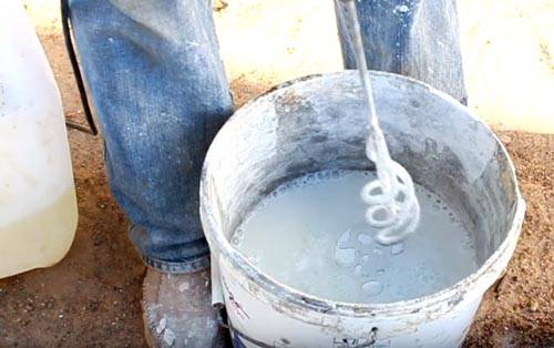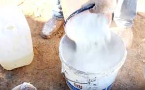 - האבקה נשפכת למים במינונים קטנים תוך ערבוב מתמיד. זה ימנע גושים גדולים להיווצר.