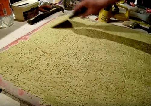 כדי להשיג את התוצאה הרצויה, השתמש בתוספים מיוחדים בתמיסת הגבס, בשברים גדולים יחסית. בעת מריחת התערובת מָרִית לפני השטח - נוצרים חריצים. עובי ועומקם נקבעים על פי גודל חלקיקי המילוי. על ידי הגדלה והפחתה של כמותו ליחידת נפח, תוכלו להתאים כראוי את צפיפות הקו של התבנית.