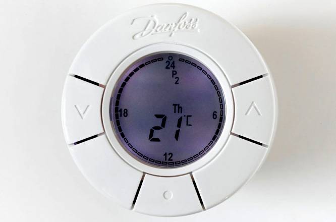 תרמוסטט אוטומטי לרדיאטור חימום שולט בזרימת נושא החום ללא השתתפות חיצונית. למכשיר יש מסך מובנה או פאנל עם כפתורים.