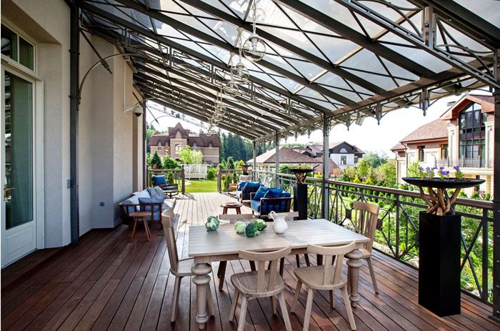 בחירת סגנון המרפסות והטרסות המחוברות לבית: דוגמאות לצילום