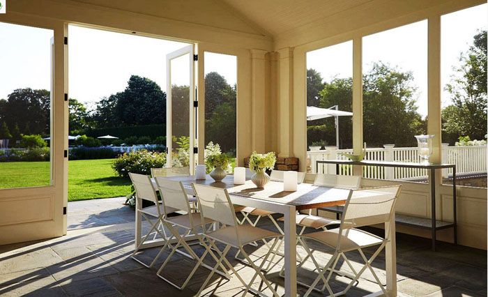 - הסוג האוניברסלי של המבנים מציע יכולת להפוך במהירות טרסה פתוחה למבנה סגור ולהיפך. לשם כך משתמשים במסגרת הזזה ובמערכות זיגוג ללא מסגרת. סוג של זיגוג ללא מסגרת מתייחס ל"קור "ואינו מאפשר שימוש בחדר מן המניין בחורף, אך מגן באופן אמין על שטחה מפני השפעות הסביבה - רוח, אבק, רעש, משקעים, תוך יצירת אשליה של השטח הפתוח ביותר. אם אתה מתקין מערכת חימום, אז ניתן להשתמש במרפסת עד מזג אוויר קר עמוק, בתנאי זיגוג המסגרת, מה שמבטיח את שמירת החום בתוך החדר.
