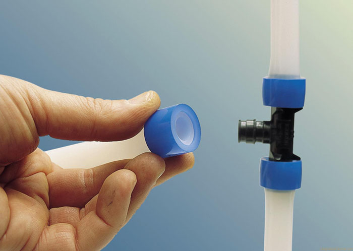 מערכת הצינורות PEX מורכבת באמצעות אביזרים מיוחדים. לשם כך שמים טבעת או שרוול על הצינור, וקוטרו מורחב בעזרת ציוד מיוחד. לאחר מכן, האלמנט נמשך תחילה אל ההתאמה, ואז אל השרוול. התוצאה היא קשר חזק במיוחד.