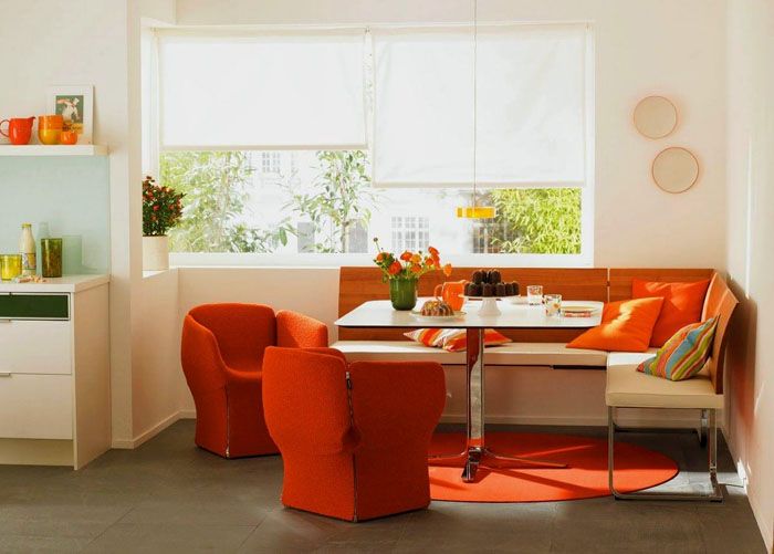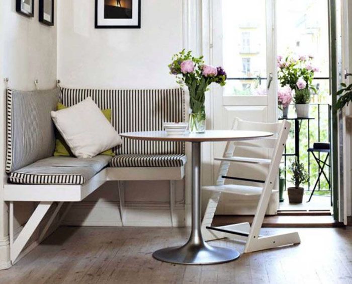 בצורתו הפשוטה ביותר, רהיטים משמשים רק לארגון ישיבה. התצלום מציג דוגמאותספות פינתיות צרות במטבח... הם תופסים מינימום מקום פנוי והם לא יקרים.