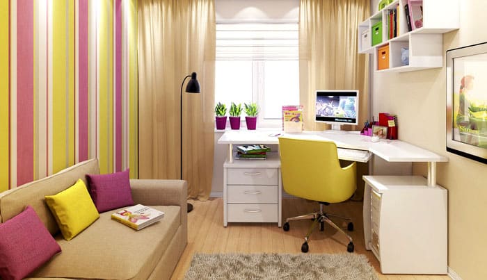 - מראה הדגמים הופך את החדר למסוגנן, מקורי ואינו מטיל מרחב עבודה על העין.