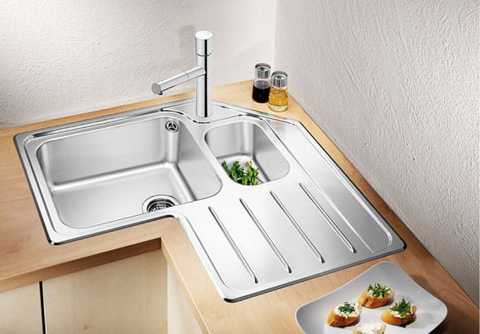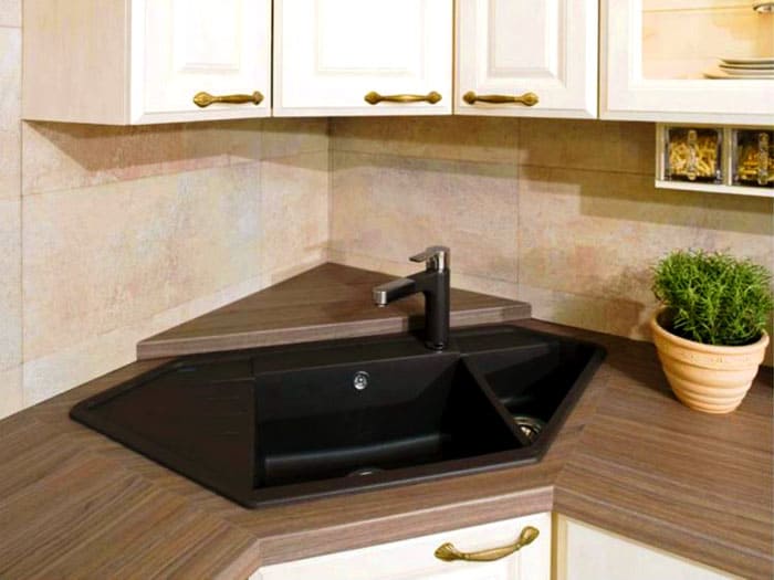 יש למקם את הכיור בפינה אם הוא מעוגל. במקרה זה לא יהיו בעיות בגישה אליו. הכיור יכול להיות גדול או קטן, הכל תלוי בגודל השיש.