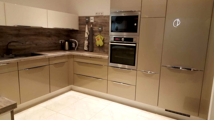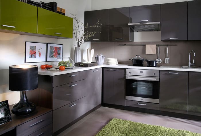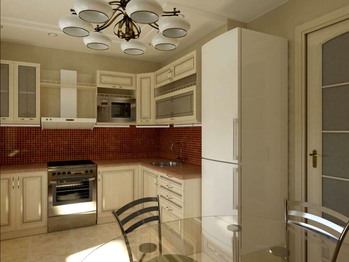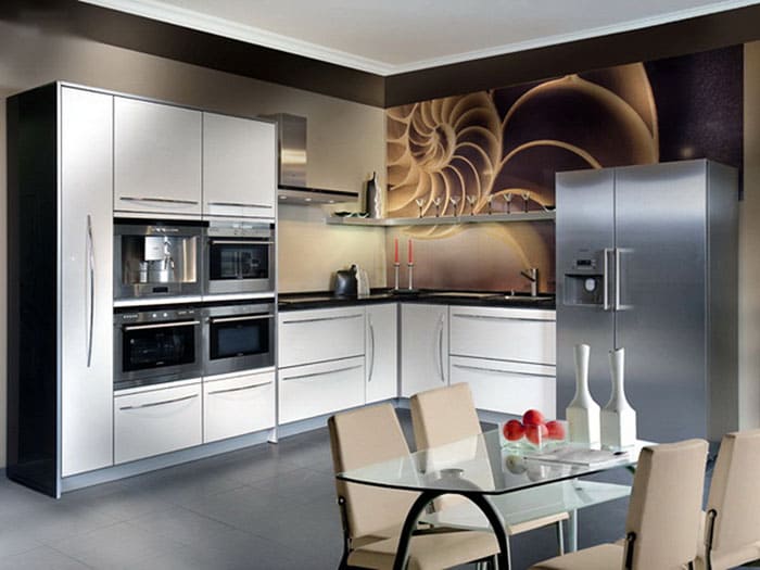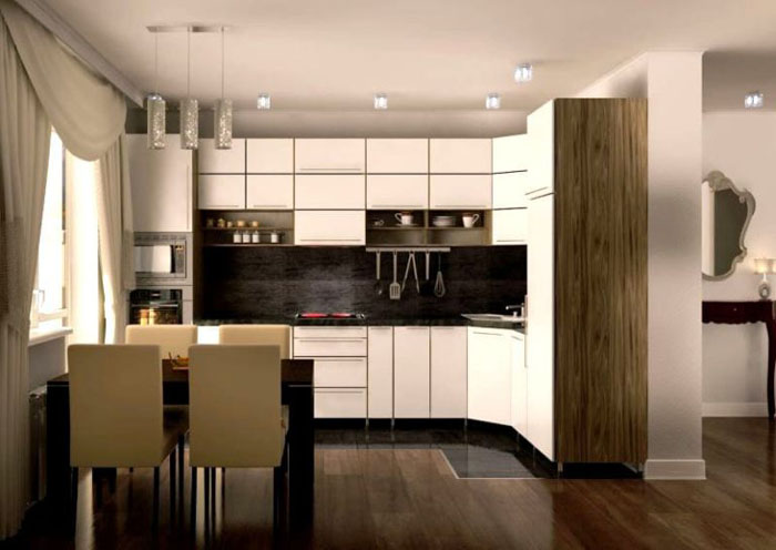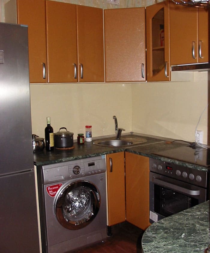 מיקום פינתי מְקָרֵר זה נחשב מועיל מנקודת מבט של ארגונומיה, אך זה לא תמיד אפשרי בפועל עם סט מטבח בצורת L. שקול אפשרויות למיקום נוח תא קירור.
