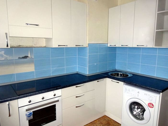 - שימוש רציונלי באזור העבודה על פי העיקרון של משולש הזהב: המקרר, הכיור והתנור נמצאים במרחק שווה אחד מהשני, וזה מאוד נוח;