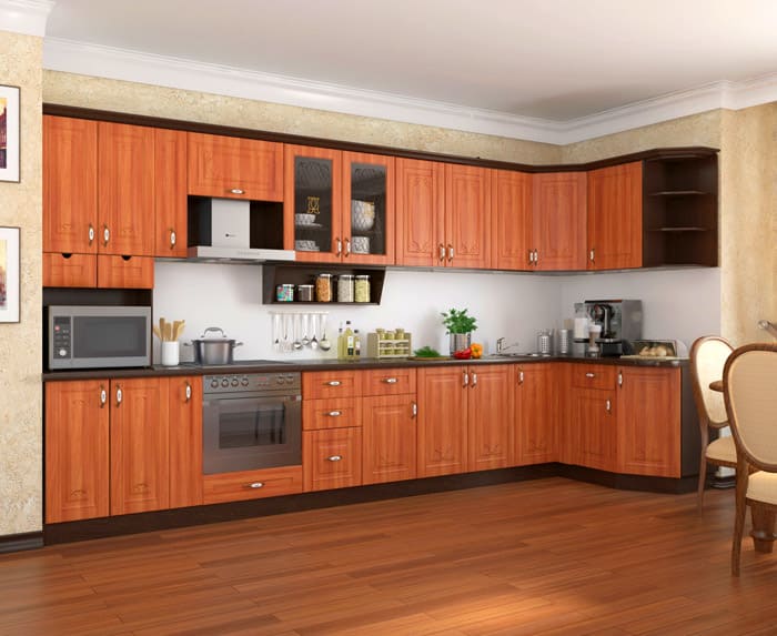 המסגרת של ריהוט המטבח עשויה סיבית, סִיבִית, MDF, עץ מלא. לוחות עלים הם תקציביים יותר במחיר, עם שפע של צבעים. ציפוי עם לרבד (סיבית) או פולימרים הופך את המוצר לעמיד למדי למיקרו אקלים של החדר.