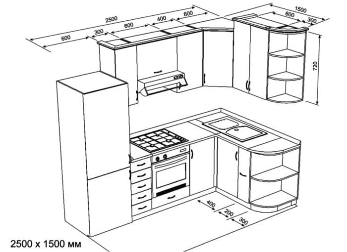 מידות המוצרים כולן אפשריות, אם כי אינן חורגות הרבה מהסטנדרטים המומלצים. עבור מטבחים מרווחים, ההנחה היא שיש יותר מקטעים ועליית המרחק בין אלמנטים העבודה. אך עבור מטבחים קטנים וגדולים, קיימים שינויים שונים בביצועים. בואו נראה אילו פריסות יהיו האופטימליות ביותר מבחינת הפונקציונליות.