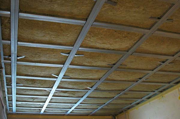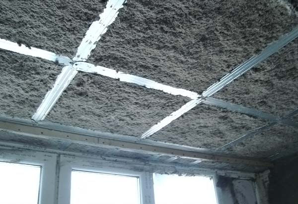 - צלחות של חומר מבודד חום מחוברות לתקרה עם דבק, ולאחר מכן הן מקובעות בנוסף בדינלי פטריות;