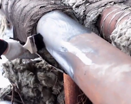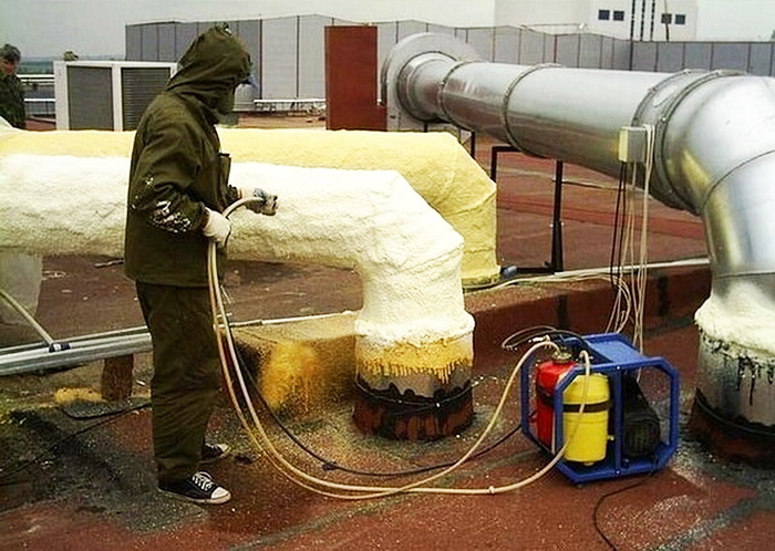 סוג זה של חומר מוחל על ידי ריסוס באמצעות מכונה מיוחדת. מתאים לכל משטח, כולל צינורות. הוא נצמד אליו בצורה מושלמת, מכיוון שהדבקותו הגבירה.