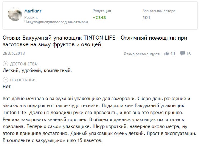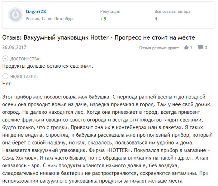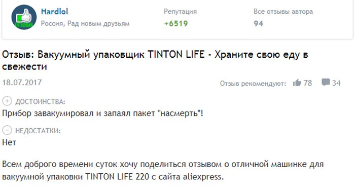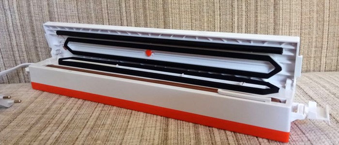 אוטם ואקום מאוד פשוט ונוח שניתן לקנות בכ 1000 רובל ב- Aliexpress. חומר מארז - פלסטיק. רוחב התיק המקסימלי הוא 28 ס"מ. לאיטום רצוי להשתמש בשקיות גלי מיוחדות, אשר יכולות להבטיח אטימות ואמינות מרבית.