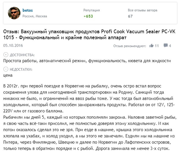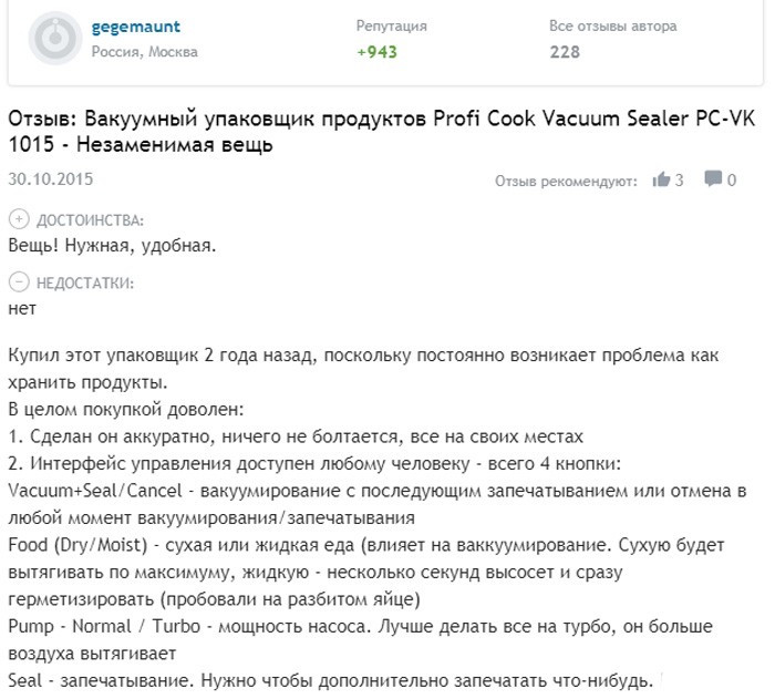 סקירה של פרופיל קוק אוטם ואקום PC-VK 1015: