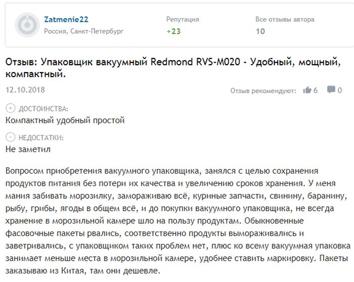 אוטם ואקום פשוט ופונקציונלי מאוד לבית, אותו ניתן לקנות ב -5,000 רובל. הגוף עשוי פלסטיק משובץ במתכת. מהירות שאיבת האוויר היא 12 ליטר / דקה. אורכו המרבי של הסרט התרמי הוא 30 ס"מ. המכשיר נשלט אלקטרונית באמצעות כפתורי קרום. מהפונקציונליות של אוטם הוואקום של רדמונד, כדאי להדגיש את היכולת לעבוד עם מיכלי ואקום מיוחדים, שעבורם יש צינור מיוחד. ניתן גם לבחור את סוג המוצר בו משתמשים - רטוב או יבש. לדגם של אוטם הוואקום של רדמונד RVSM020 יש שקיות אריזה מיוחדות של היצרן, שבאופן כללי ניתן להחליפן באנלוגים.