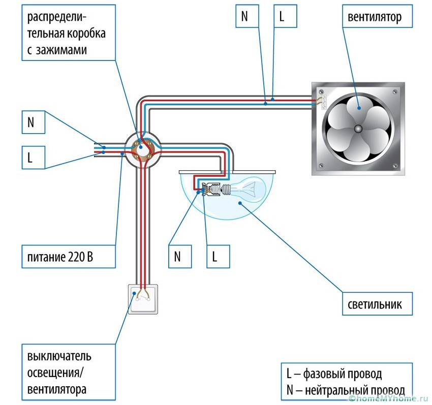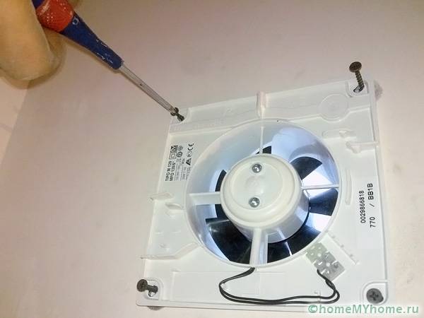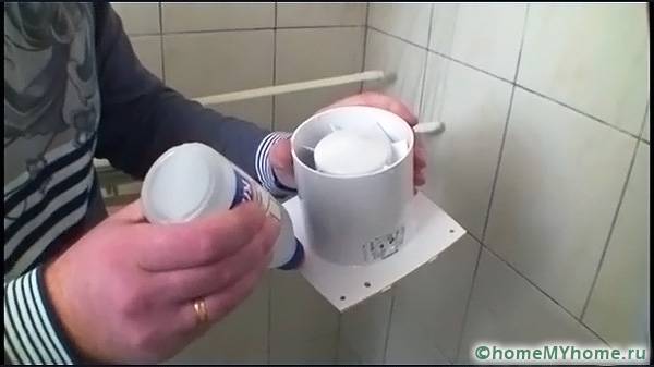 מומלץ להתקין מאוורר אמבטיה שקט בצינור האוויר עצמו או בחוץ עם הטבעה בקיר או בתקרה במנורת פליטה מיוחדת. התקנה שלב אחר שלב מתבצעת ברצף הבא: