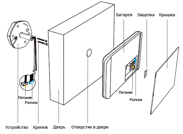התקנת המכשיר אינה קשה במיוחד. בקוטר החור הנדרש מותקנת יחידה חיצונית המצוידת במצלמת וידאו ובמודול תצוגה. כל זה מחובר בכבל מיוחד דרך פתח הדלת. קל להתקין בעצמך עיניות וידאו אלחוטיות.