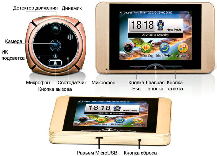 כדי להגן על המכשיר מפני נזק מכוון, העדשה מכוסה בזכוכית עמידה, והלוח עצמו עשוי מחומרים מסגסוגת קשה. התצוגה מותקנת בחלק הפנימי של הדלתות. עיצוב זה די נוח, המספק התקנה עצמית.