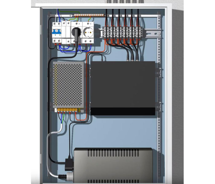 ארון מתגים במעגל סגור עם ספק כוח מותקן, יחידת אספקת חשמל ללא הפרעה ומקליט וידאו