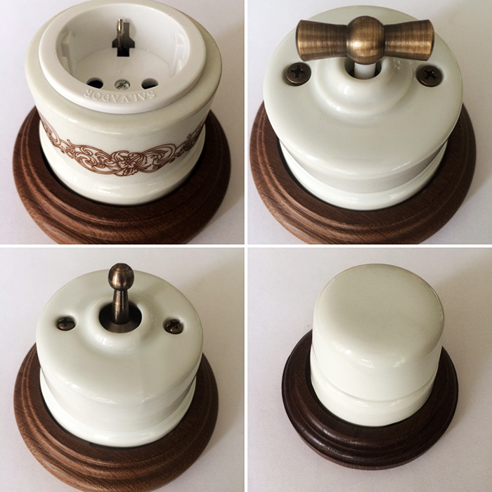 שקעים - תקורה, לעתים קרובות יש מסגרות התקנה מיוחדות (למקומות 1-3) עשויים עץ, פלסטיק "כמו מתכת" או קרמיקה. עבור מכשירים המשמשים לעתים קרובות, עדיף להשתמש בקרמיקה, מכיוון שהם מונעים חום.
