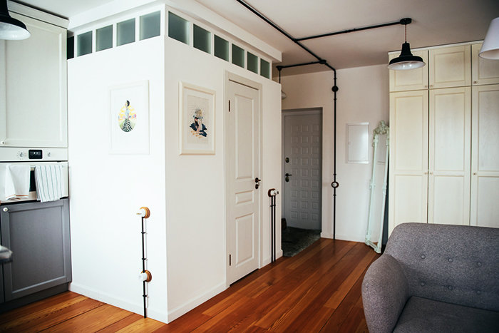 פרויקט עיצוב של חיווט רטרו בבית עץ ודירות עם תמונות פנים