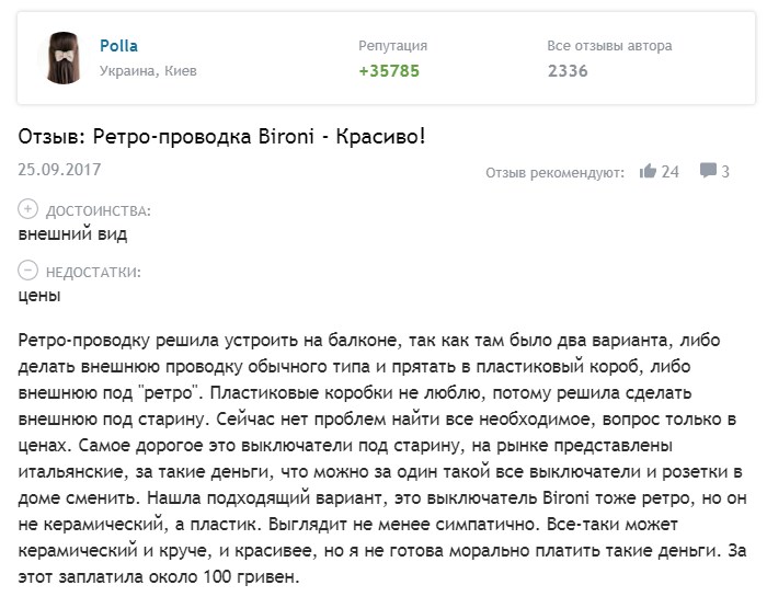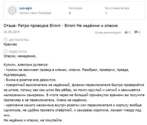 היצרנים הרוסים מיוצגים הרבה פחות. חברות ראויות כוללות לינדאסשמוצריהם אינם נחותים באיכותם לאלמנטים של חיווט רטרו בירוני... סחורות סיניות מיוצגות באופן נרחב, אך איכות המוצרים שלה מותירה הרבה מהדבר הרצוי. הביקורות הראויות ביותר (אם כי הבינוניות) הוענקו למוצרים סלבדור.