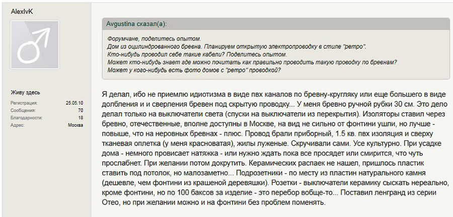 ראשית כל, עליכם לתקן את התפיסה המוטעית כי חיווט רטרו מתבצע אך ורק באמצעות כבל פתוח. מותר להניח צינורות חשמל ממתכת צבועה ופלסטיק דמוי נחושת. צינורות כאלה, בנוסף דקורטיביים, גם לבצע פונקציה מגן. הם גם מאפשרים להשתמש בכבל רגיל. שיטה זו של הנחת חיצוני משמשת ב בסגנון סקנדינבי (קישוט פנים מעץ) או עֲלִיַת גַג (קירות לבנים ובטון). כמו כן, על פי דרישות ה- PUE, הנחת כבלים בצינורות מתבצעת בחדרים עם לחות גבוהה: חדרי אמבטיה, מקלחות, סאונות וכו '.