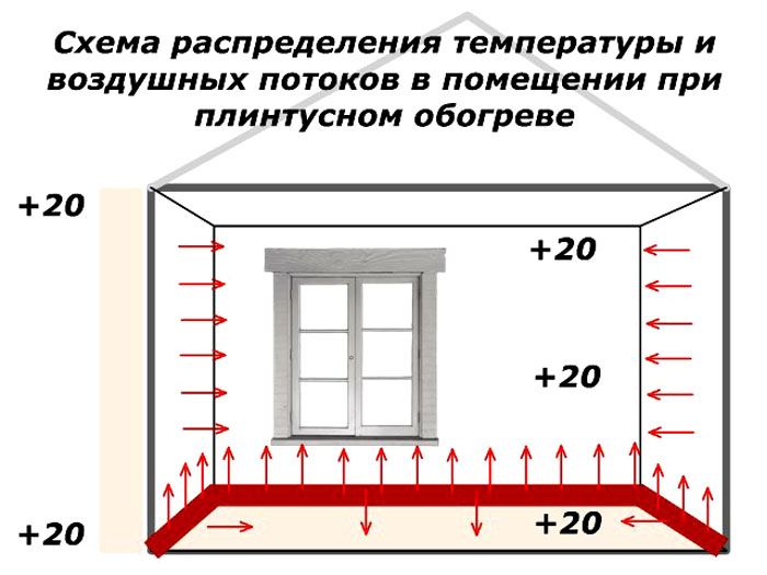 העיקרון של חימום חלל עם לוחות עוקפים הוא שהחלק העיקרי של האנרגיה התרמית עובר לחימום הקירות, ואז מקרינים חום בעצמם. פחות חום עובד על עקרון הסעה.