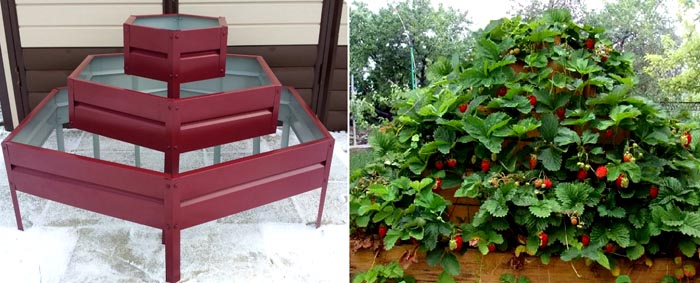 לא כל תושב קיץ מוכן להשקיע זמן ומאמץ בבניית מיטה אנכית לתותים ולגידולים נמוכים אחרים, ולכן רבים פונים לרכישת עיצוב זה.