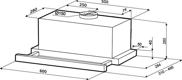 עיצובים של ברדסים נשלפים מובנים למטבח בגודל 60 ס"מ כוללים לרוב עקרון הפעלה חוזר. מכסה המנוע יכול להיות לא רק מובנה, אלא גם תלוי או כיפה. גרסה מובנית ותלויה מתאימה לחדר קטן.