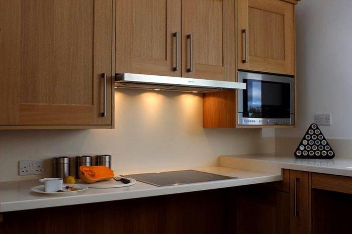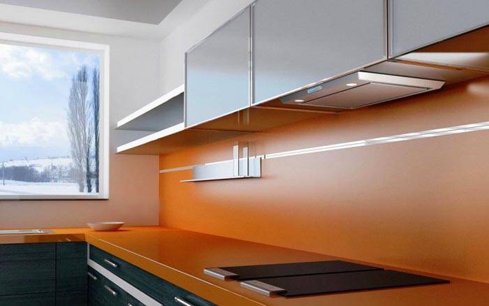 מידות מכסה המנוע למטבח 60 ס"מ אידיאליות לחדר קטן. עיצובים כאלה מאפשרים לך ליצור פריסה נוחה גם במטבחים קטנים. אם המכשיר ממוקם בין ארונות קיר, ניתן למקם את החלק הקדמי מתחת לפאנל מיוחד. זה יכול להיות מצופה באותו חומר כמו ערכת המטבח.