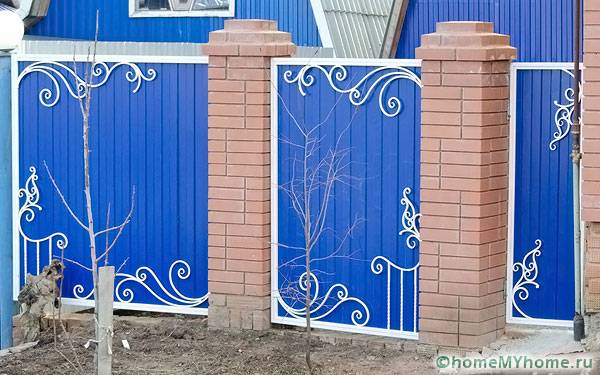 אלמנטים של מתכת מזויפת יעניקו לגדר מראה מעולה. ניתן להזמין אותם בנפרד או לרכוש כשברים מוכנים. אם תציב אותם לא רק על הגדר, אלא גם על חזית הבית, תוכל להשיג את אחדות ההרכב.