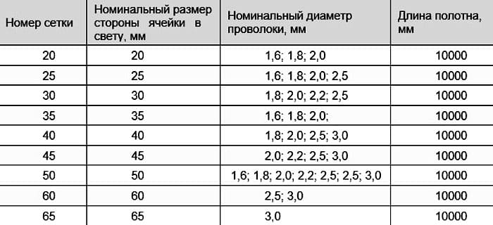 GOST מציין כי רשת עם תאים בגודל 10 × 10 מ"מ צריכה להיות מורכבת מחוט בקוטר של 1.4-1.6 מ"מ. ככל שהמרווח גדול יותר, כך החוט עבה יותר, אך ככל שהתא קטן יותר, כך הגדר חזקה יותר.